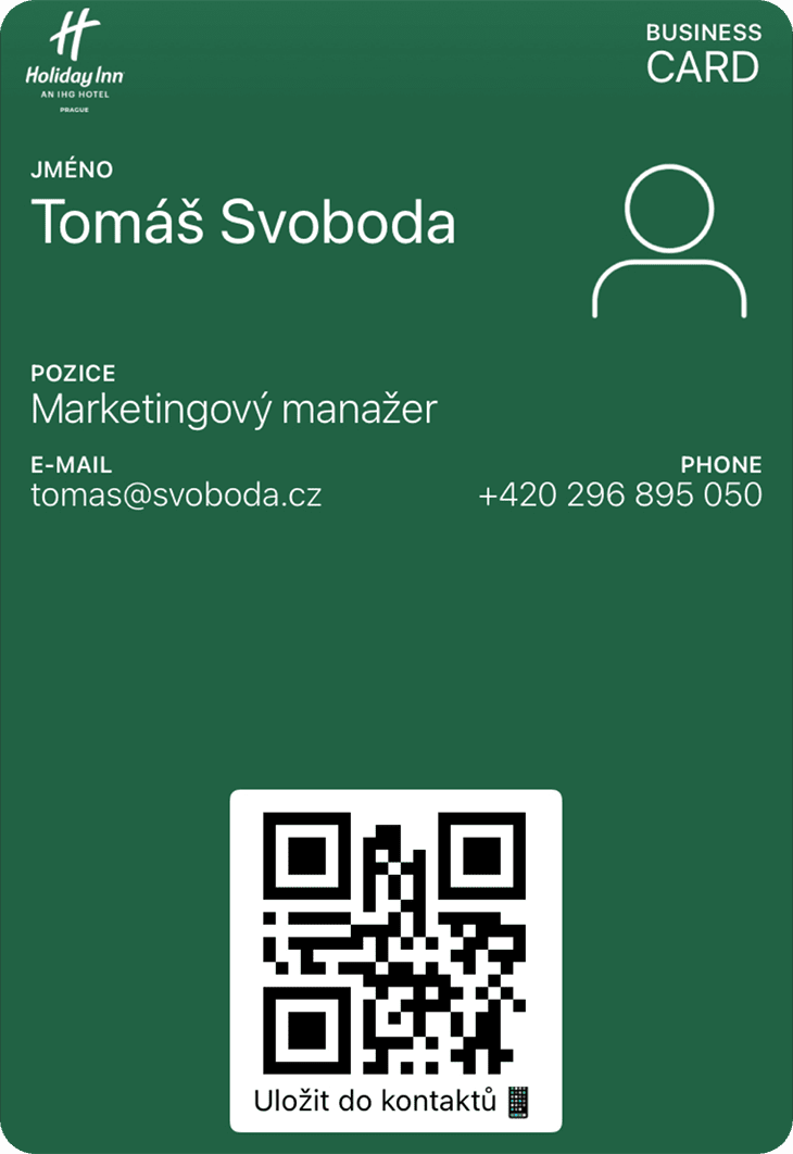 Digitální vizitka umožňuje snadné sdílení kontaktů. Po naskenování QR kódu z vizitky se kontaktní údaje uloží do telefonu.